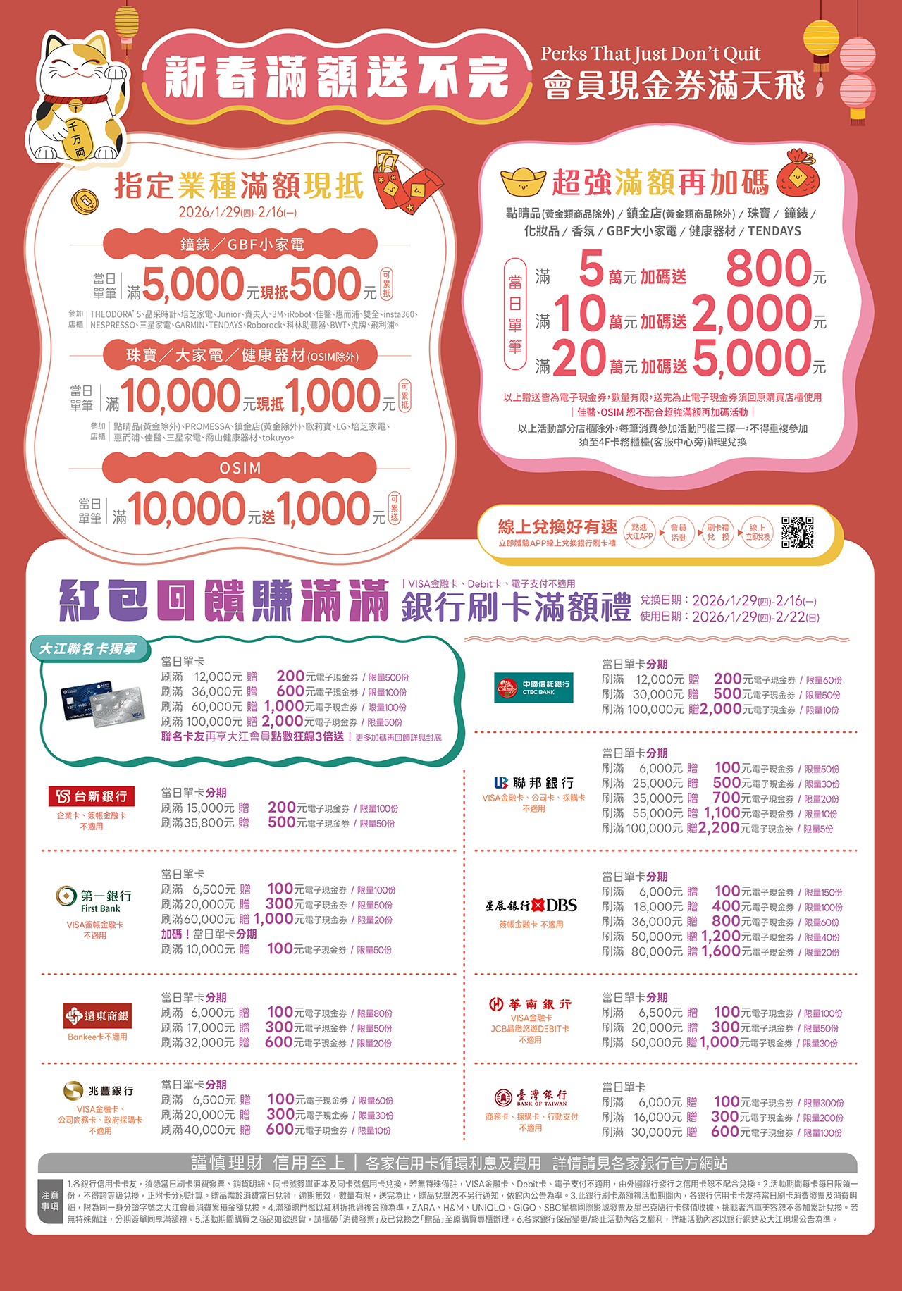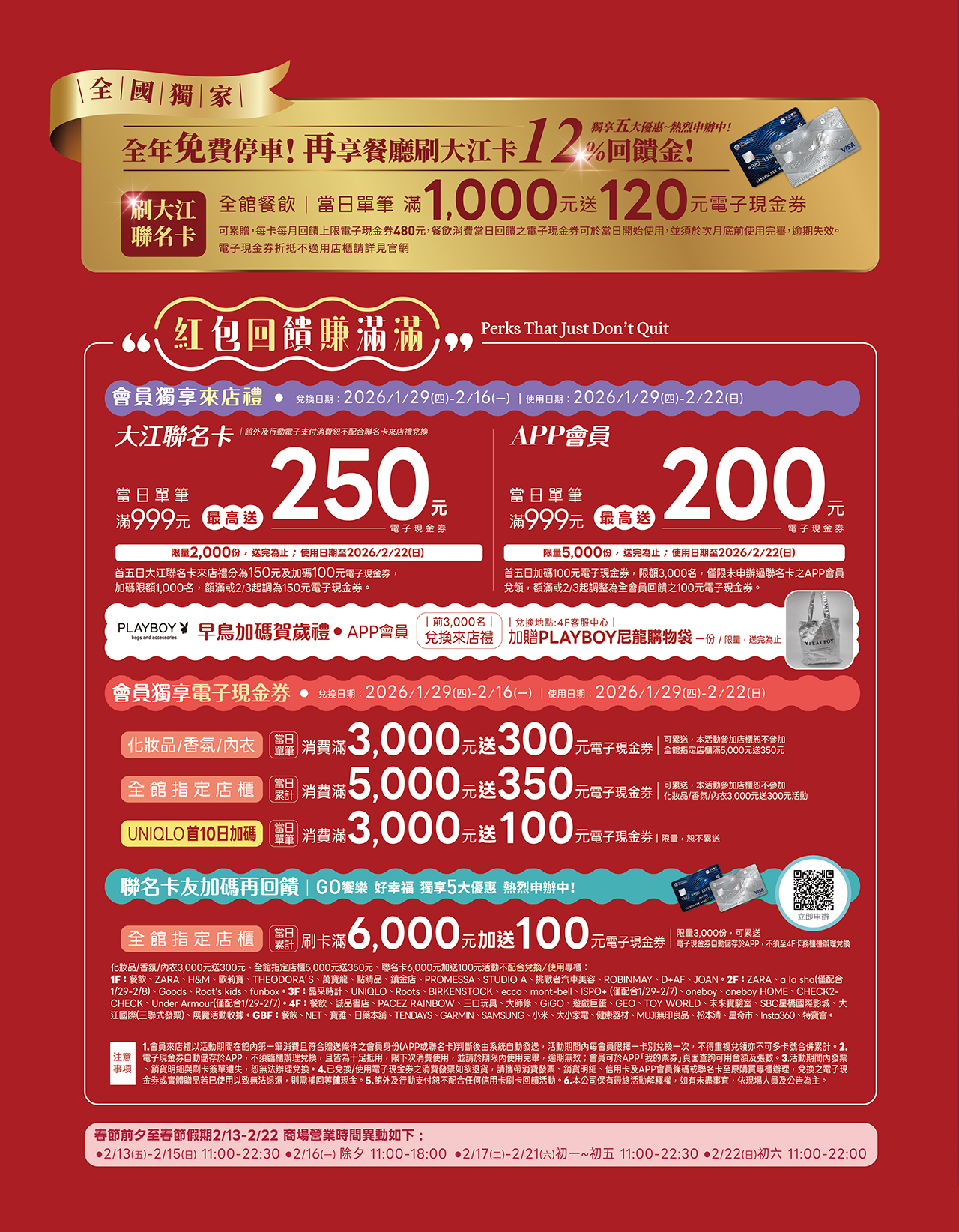 全國獨家!停車全年免費 再享餐廳刷大江卡12%回饋金